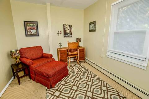 The Boyer Suite was named after the family that built the original house. It has a bedroom with a full-sized bed and a living room with a smart TV. The suite is located on the 1st floor. The restroom for this room has a walk-in shower and hair dryer and is shared with two other rooms.